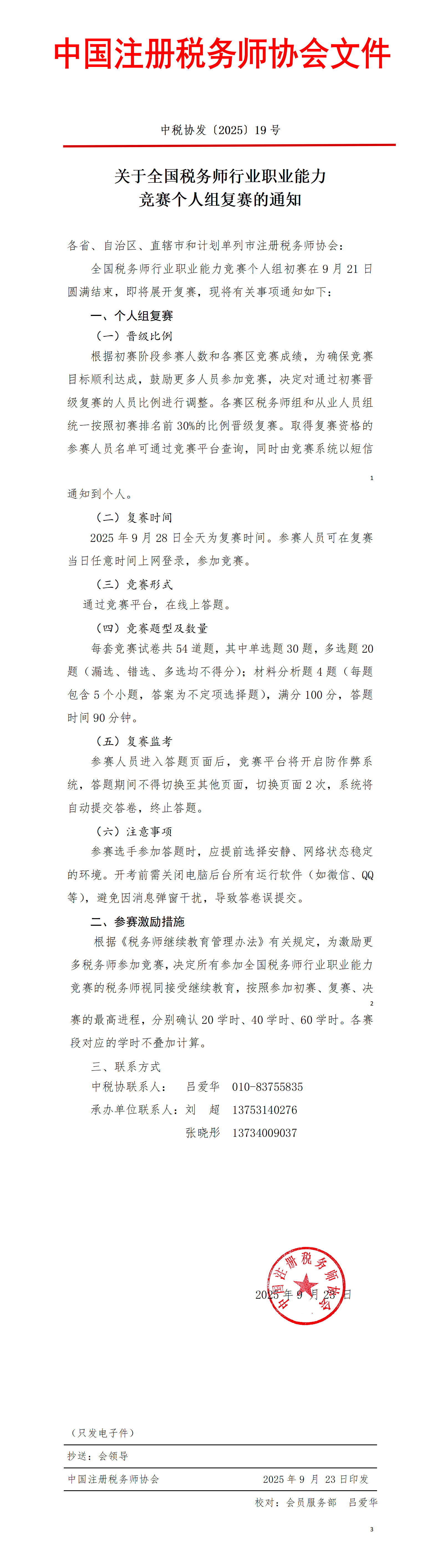 關于全國稅務師行業職業能力競賽個人組復賽的通知
